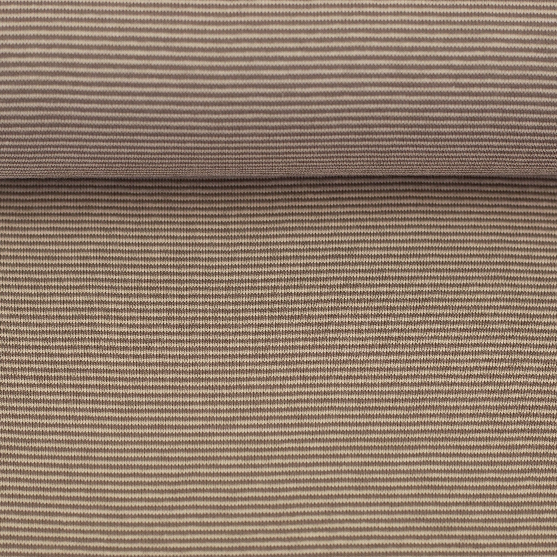 Passend zu deinem nächsten Nähprojekt findest du hier unsere Bündchenware mit 1mm Streifen in Sand - Schlamm. Unser Bündchen ist weich und sehr dehnbar, leiert dabei aber nicht aus.