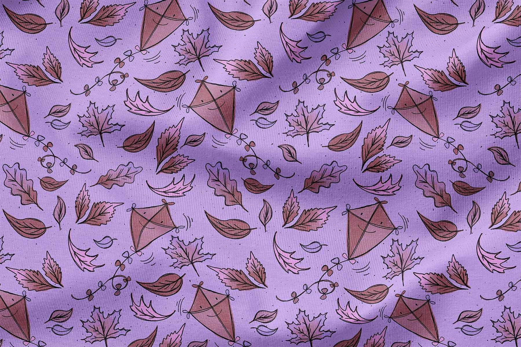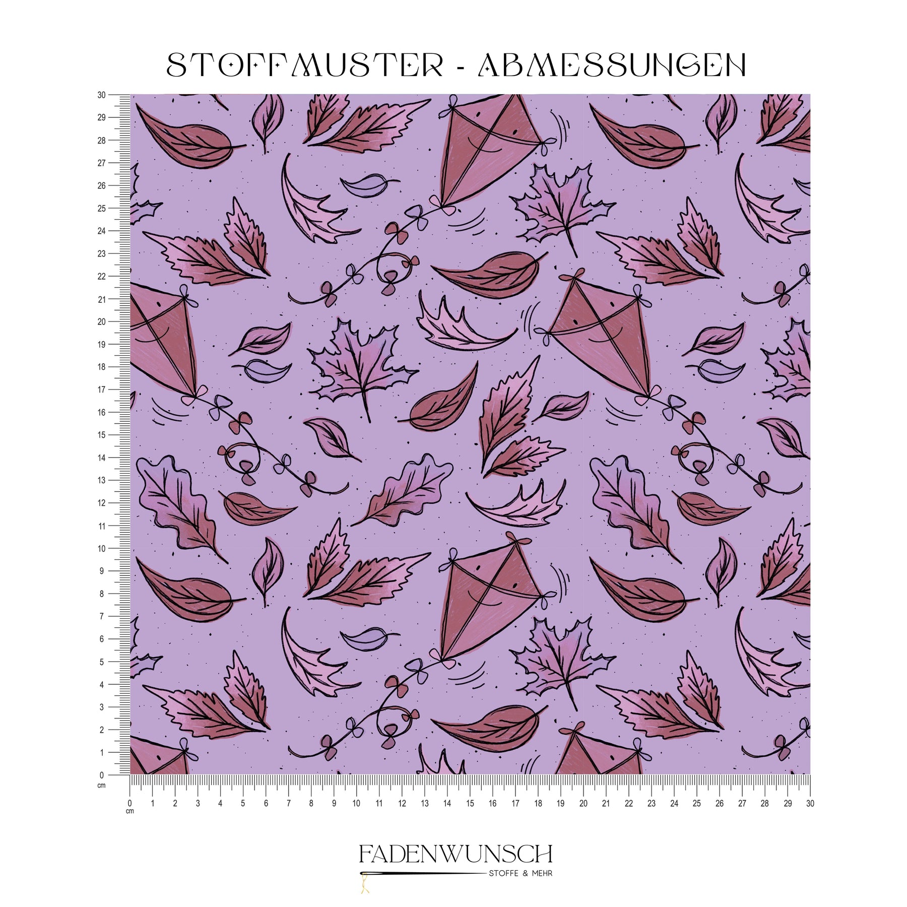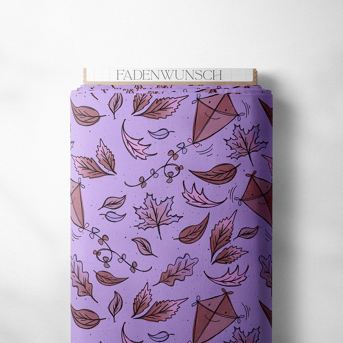 Auf kräftigem Lila tanzen rostrote Blätter und kleine Drachen durch die Luft. Dieses verspielte Stoffdesign verbindet die Schönheit der Herbstnatur mit einem modernen, farbenfrohen Hintergrund. Der perfekte Begleiter für alle, die es lebendig und kreativ lieben.