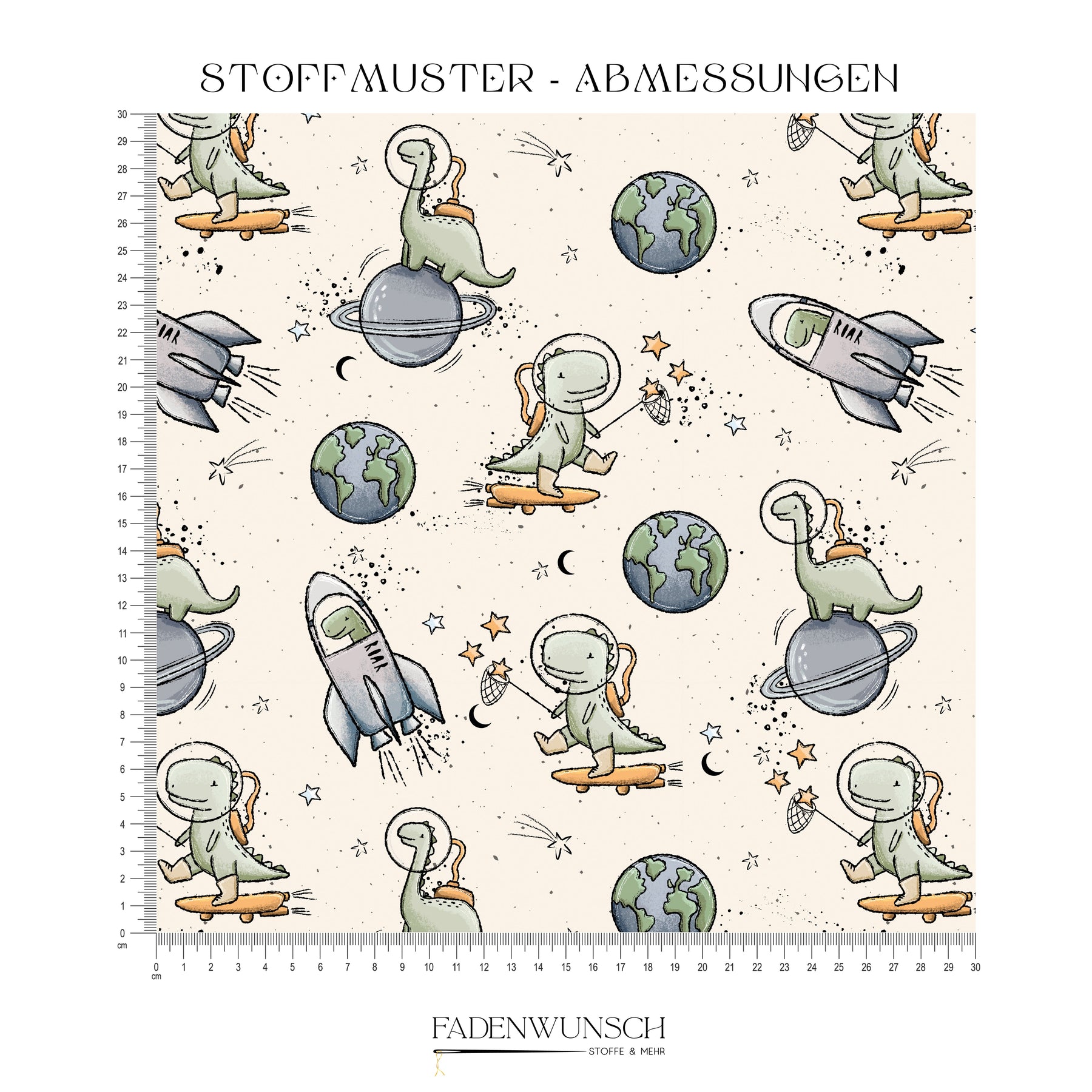 Ob verspielt oder cool, farbenfroh oder klassisch – "Space Dino" macht alles mit, was dir einfällt. Nähen, mixen, kombinieren: Dieser Stoff ist bereit für deine Ideen!