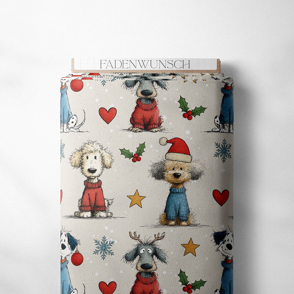 Ein Stoff, der Weihnachtsstimmung garantiert und kleine wie große Hunde-Fans begeistert!