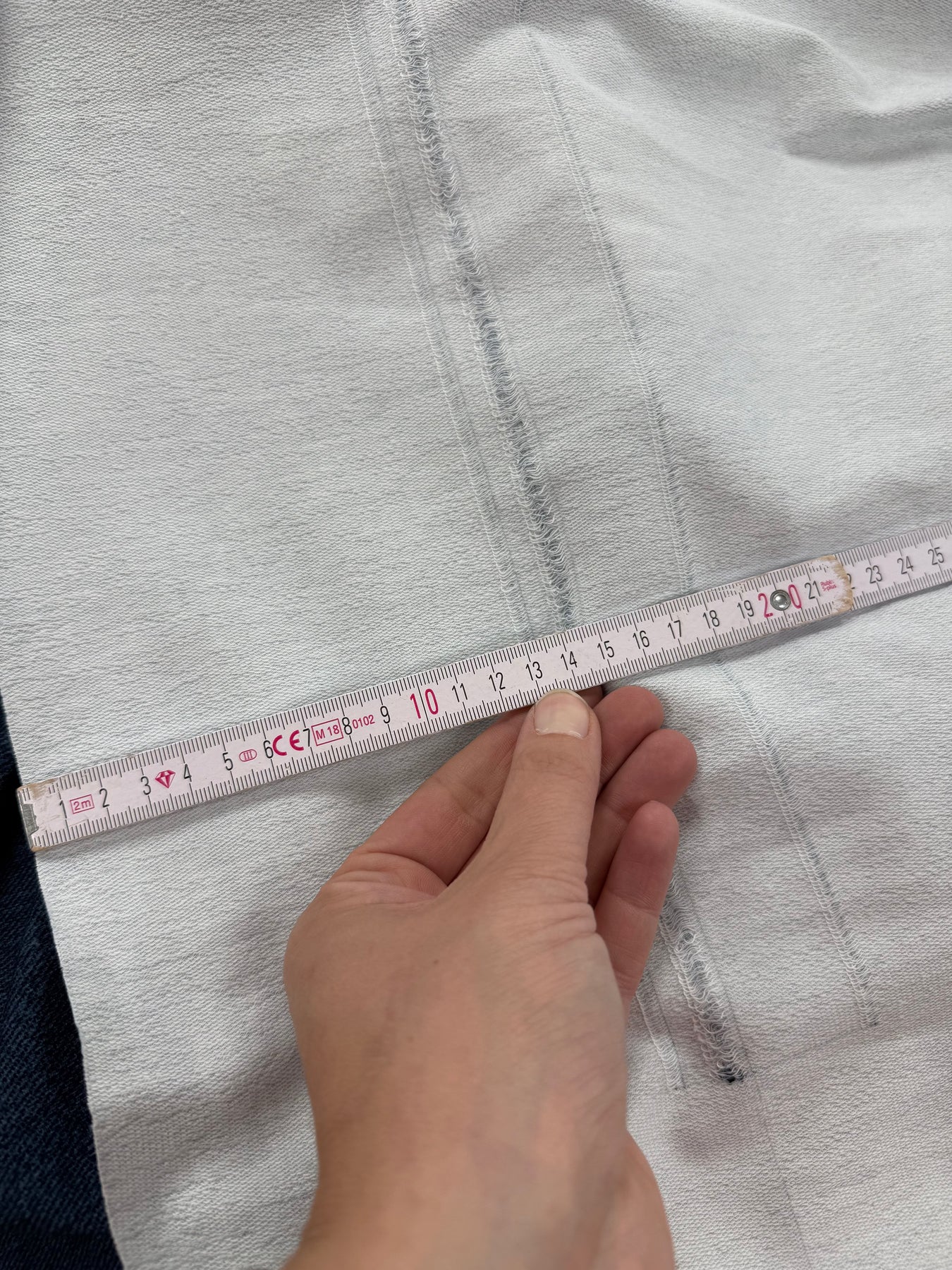 ⚠️ Webfehler ca. 20 cm vom Rand entfernt → dadurch nur ca. 130 cm nutzbare Breite statt 150 cm.