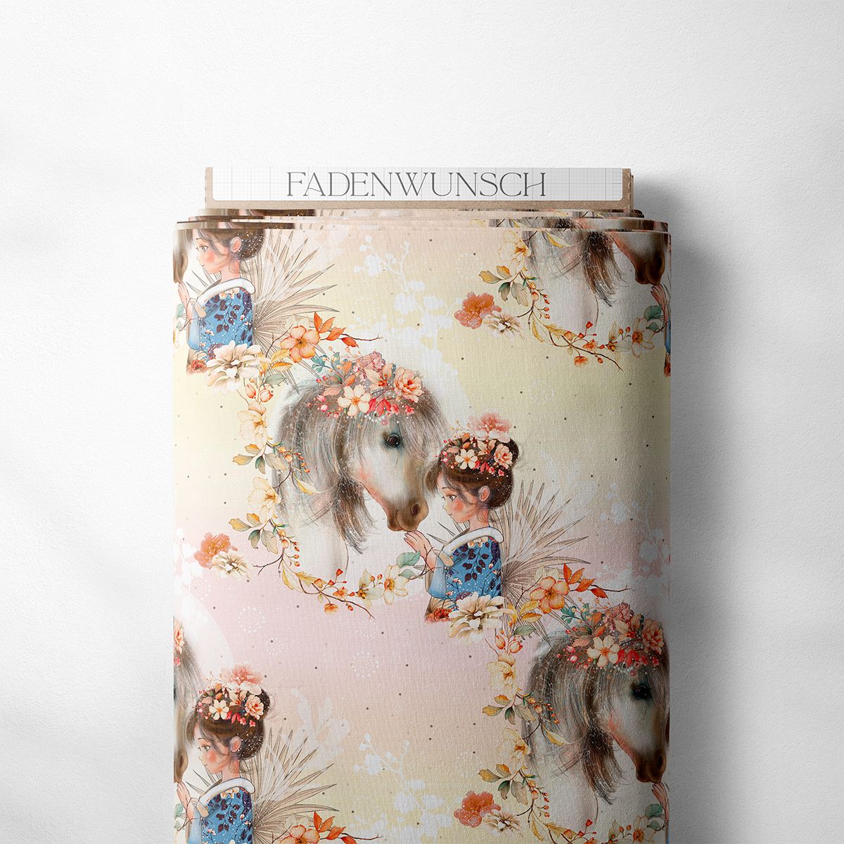 French Terry „Japanpferd“ – Sanfte Freundschaft trifft fernöstliche Anmut
