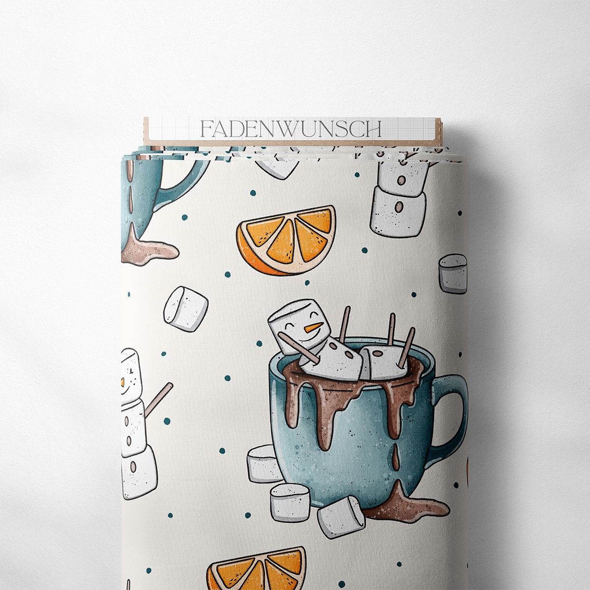 Kakao, Marshmallows und winterlicher Humor – dieses Design bringt den ultimativen Wohlfühlfaktor auf deinen Nähtisch. Die kleinen Marshmallow-Männchen baden vergnügt in Schokomug-Bechern, tanzen durch Schneepunkte und passen perfekt zu gemütlichen Winterteilen für Kids und Erwachsene.
