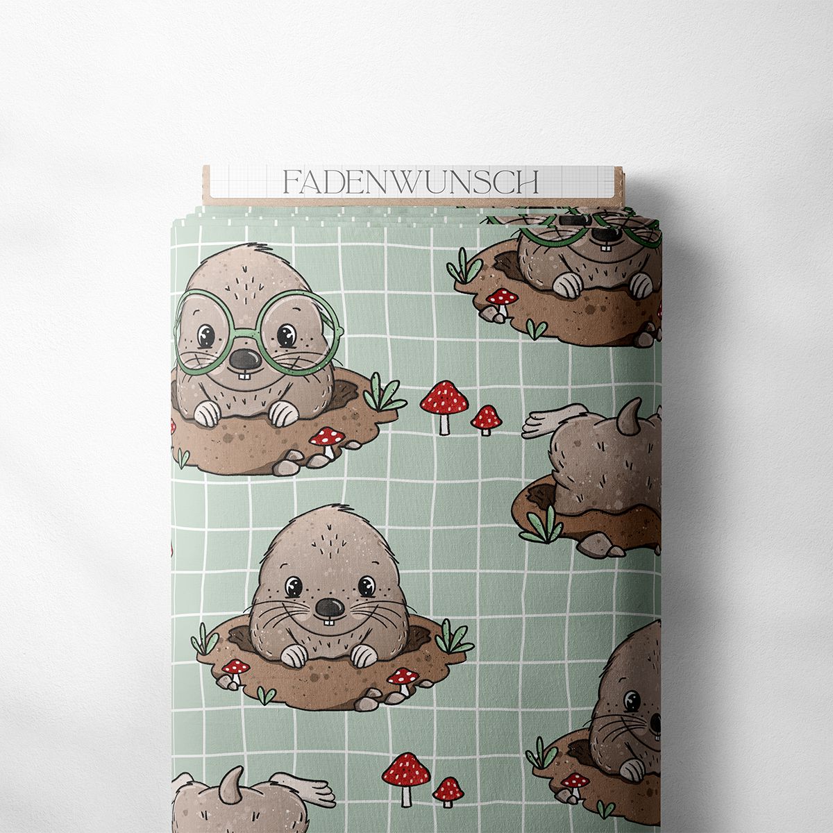 Unser „Mauli Maulwurf“ ist der Star unter der Erde und ein echtes Lieblingsmotiv für kleine Entdecker*innen. Verspielt, charmant und mit niedlichen Details wie Pilzen, Pflanzen und Karos im Hintergrund – perfekt für bequeme Kinderkleidung, Kuschelkissen oder kleine Accessoires.