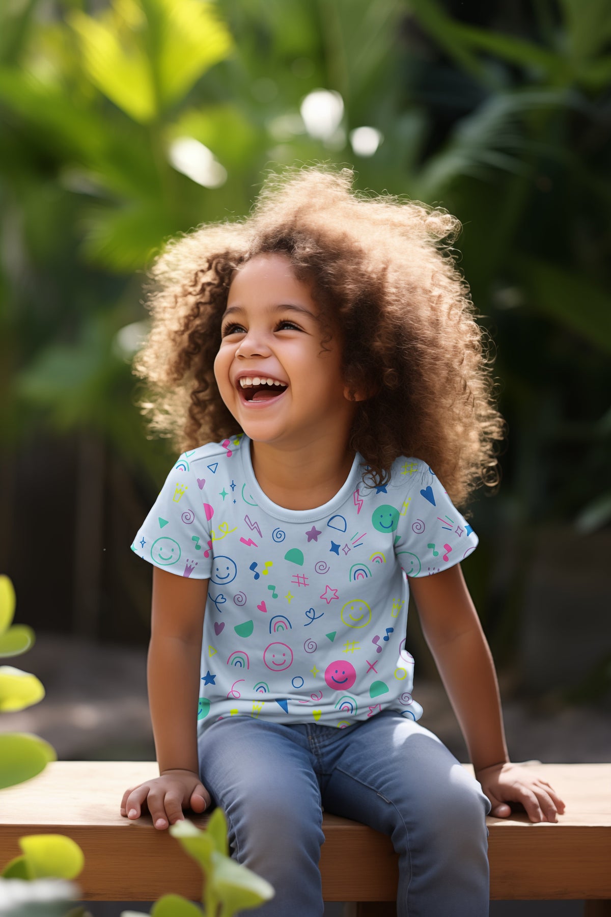 Hier kommt der perfekte Stoff für alle, die auf kreative Farbexplosionen stehen – mit einem Hauch Coolness! Auf zartem Hellblau tummeln sich leuchtende Kritzeleien in Neonpink, Limettengelb, Violett, Blau und Mint – von Blitz bis Krone, von Smiley bis Musiknote.
