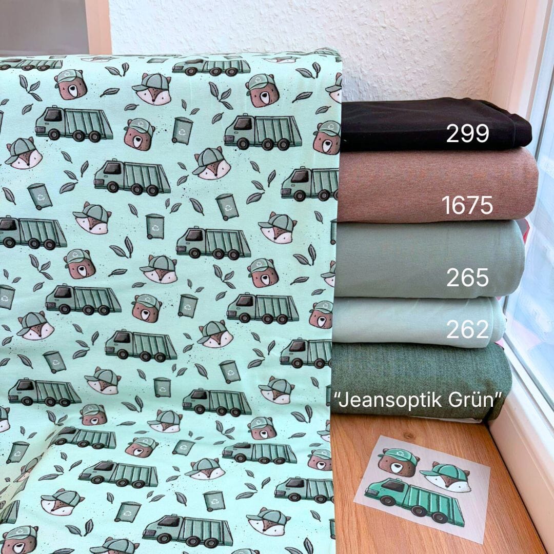 Ob verspielt oder cool, farbenfroh oder klassisch – "Müllauto Freunde Mint" macht alles mit, was dir einfällt. Nähen, mixen, kombinieren: Dieser Stoff ist bereit für deine Ideen!