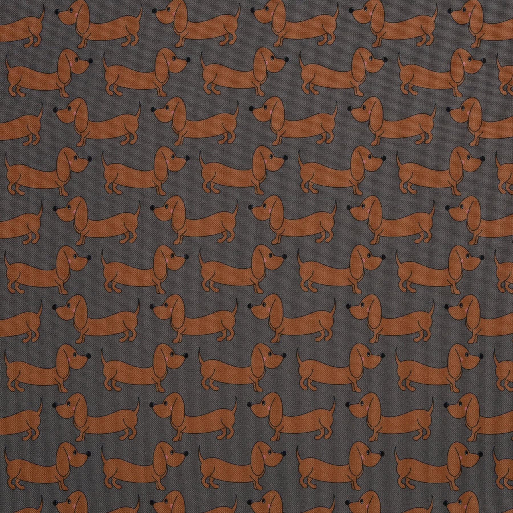 Dackelalarm! Und zwar einer von der besonders charmanten Sorte. Auf diesem Oxfordgewebe aus der Happy Collection von Cherry Picking spazieren kleine Dackel in warmem Taupe fröhlich über den Stoff – geschniegelt, geschniegelt und mit einer guten Portion Humor.